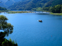 四万十川の風景を楽しみ、風情あふれるひとときを味わうことができる「観光遊覧船」。