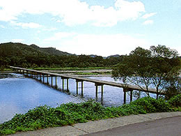 A rare sinking bridge with three piers. Also used as a location for the movie Tsuribaka Nisshi 14.