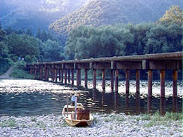 The most upstream sinking bridge in Shimanto City offers visitors with the sights and sounds of the rapids of the fast-flowing stretch of the Shimanto River. During the autumn festival, floats portraying the Japanese legendary creatures Ushioni and Itsushika are carried over this bridge to ward off evil from the area.