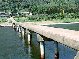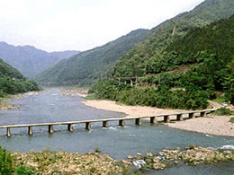 橋脚が3本ある珍しい沈下橋。釣りバカ日誌14の撮影現場としても有名。